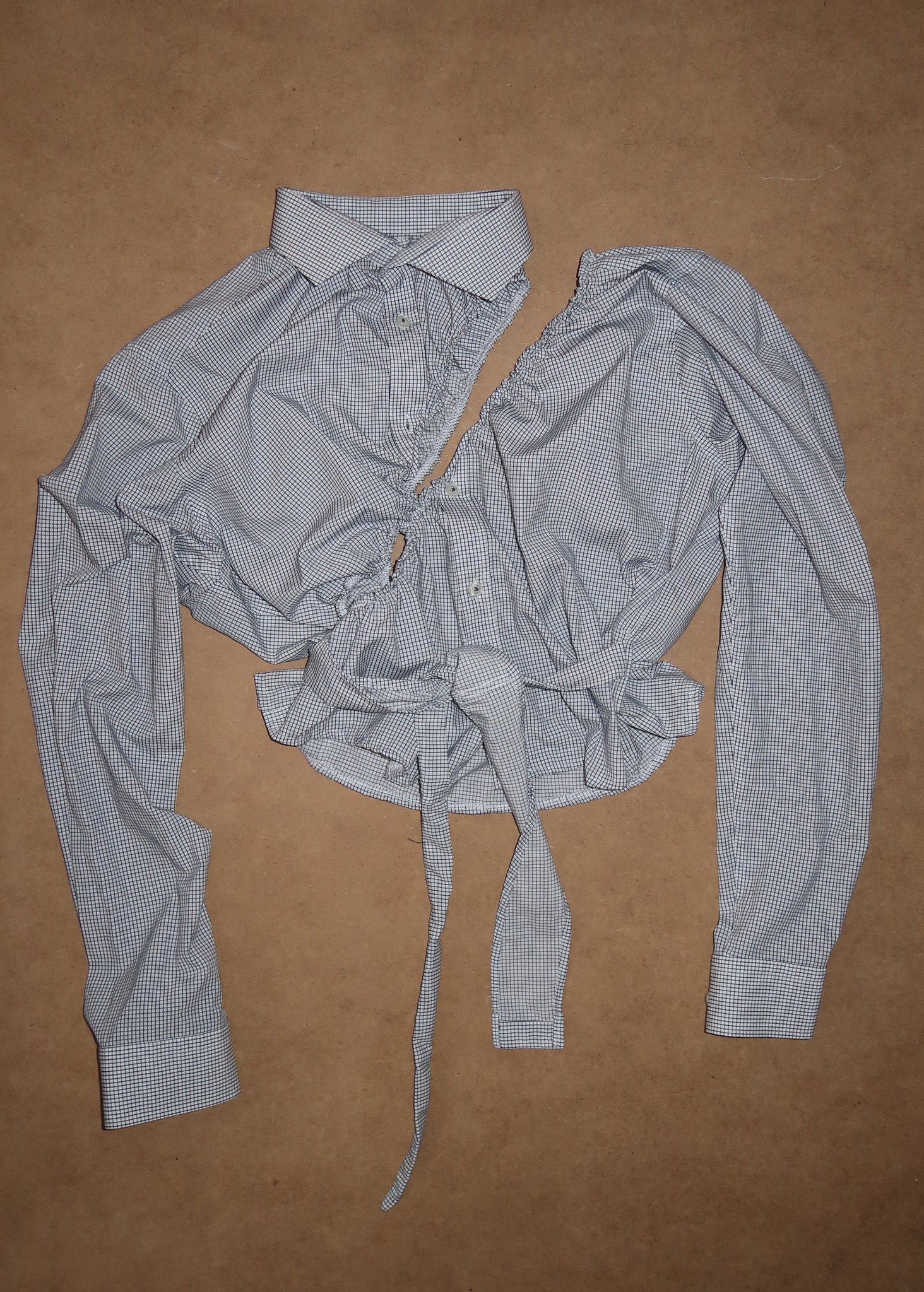 Every shirt is a one of a kind piece. They are carefully selected from vintage shops and upcycled in our copenhagen studio making every shirt special and unique. The elastic smock waist creates a bigger size spectrum ranging from small to large.